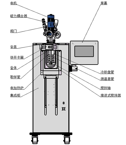產(chǎn)品功能和特點:升降型式,機電一體化設(shè)計、結(jié)構(gòu)緊湊;框架支撐結(jié)構(gòu),配腳輪方便移動;主體可快開設(shè)計,開閉釜操作方便、快捷;升降輔助機構(gòu)方便操作,手動/電動可選;高扭矩磁力傳動,配優(yōu)選電機,提升運行穩(wěn)定性;攪拌支持定制槳葉類型,適配多樣化攪拌需求;加熱爐傳熱快,均熱效果好,效率可調(diào);真彩色觸控屏,模塊化顯示,控制界面操作簡潔;支持遠程控制,具備RS485通訊口,配上位機軟件;可顯示工作時間/溫度/轉(zhuǎn)速/壓力,PID自整定控溫精準(zhǔn);具備安全連鎖功能,超溫超壓報警;具備數(shù)據(jù)采集,記錄以及報表導(dǎo)出功能;支持選配加料、計量、取樣、冷凝等擴展功能。
